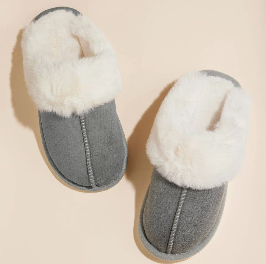 Grey Slippers with Beige Trim