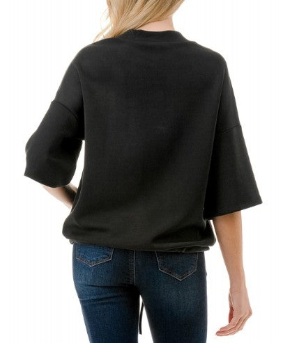 Allie Rose Pointelle Scallop Neck Sweater - Black