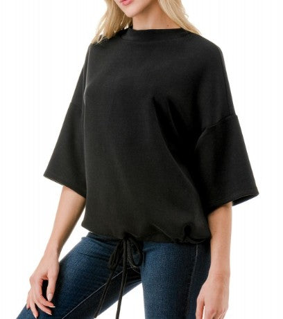 Allie Rose Square Neck Ribbed Long Sleeve Knit - Black