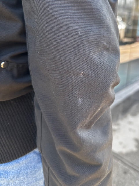 Moose Knuckles X-SMALL/SMALL Black Original Debbie Shearling Bomber Jacket - Retails for $1190 - Small hole in the arm