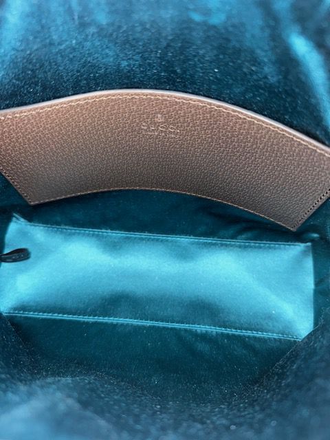 ADDITIONAL FEATURES: zipper pulls with GG charm, interior pocket, zipper closure, comes with dustbag