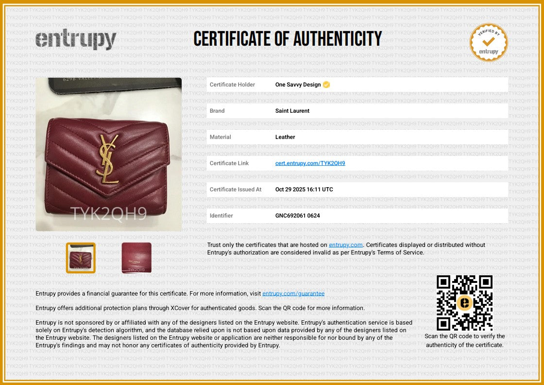 Saint Laurent Cassandre Multi-Fold Wallet in Lambskin - Rouge Cabernet - Retails for $850