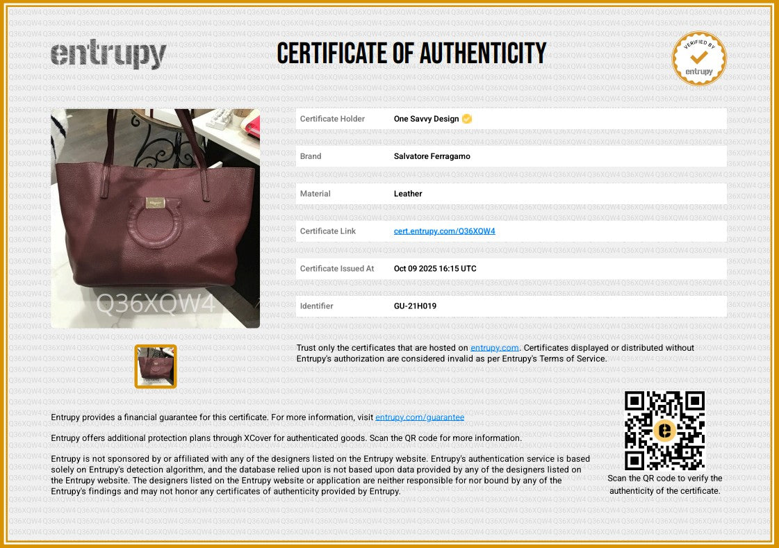 Salvatore Ferragamo Gancini Medium City Tote - Burgundy