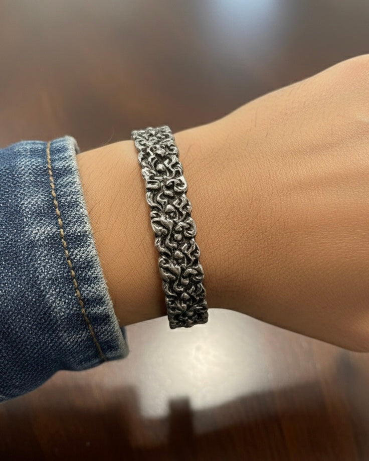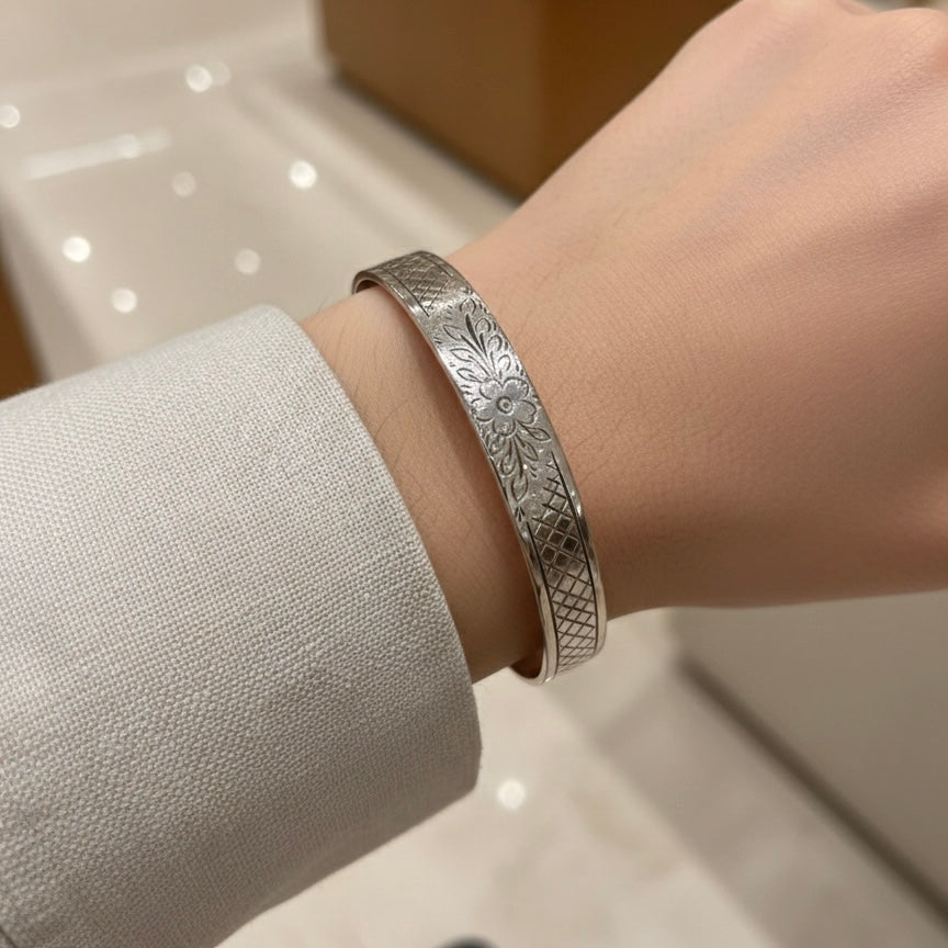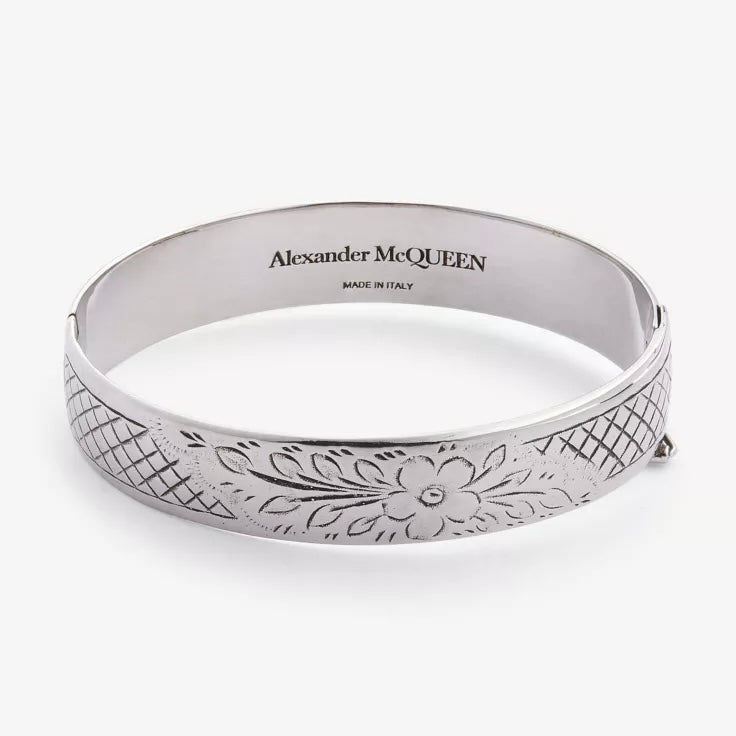Alexander McQueen Engraved Logo Floral Bracelet