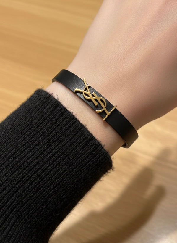 Saint Laurent Cassandre Leather Bracelet