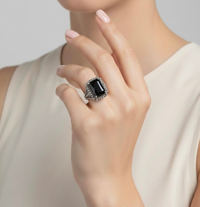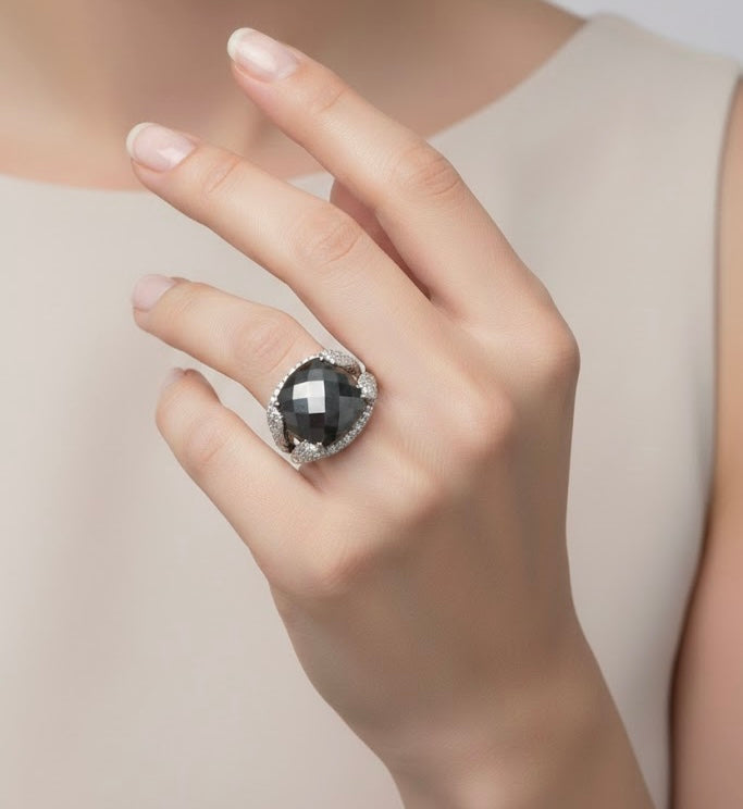 Judith Ripka Sterling Silver and Onyx Ring - Size 6