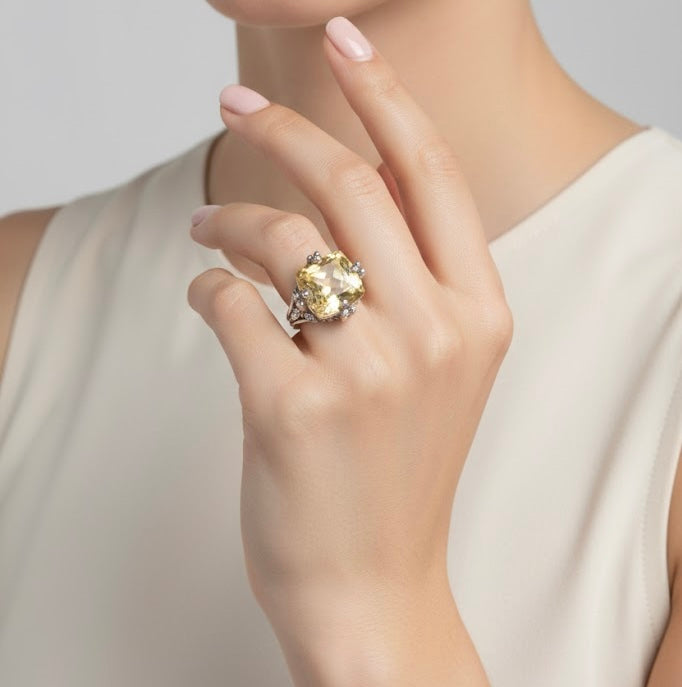 Judith Ripka 18ct Canary Citrine Ring - Size 6.5